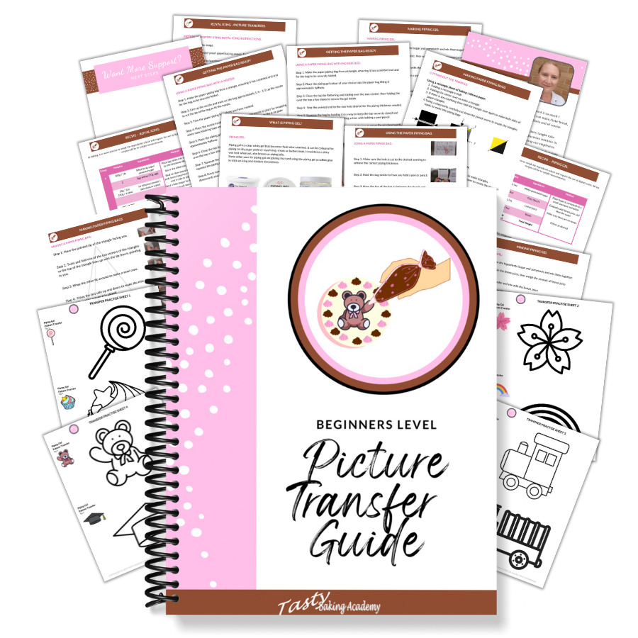 - Four picture transfer image sheets to learn how to draw pictures on the cake/ and transfer them once set.